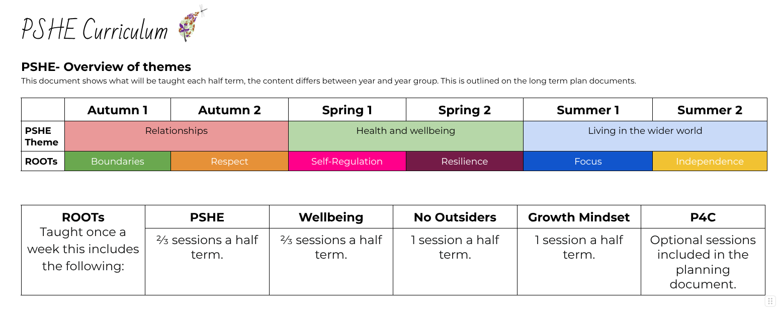 The content of our PSHE curriculum is delivered weekly alongside our ROOTs curriculum focus.